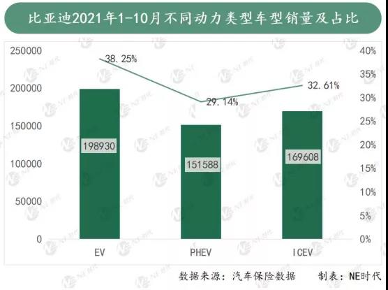 而这将近10万的A级PHEV车型中,有89326台是比亚迪DMI车型,其中秦Plus 55070辆,宋Plus 34256辆。 以秦Plus为例,作为一款标准的A级车,除了可以汽油驱动,还提供55km和120km的纯电续航,但是补贴后的售价只有10.58-14.58万元,这种车放在目前的燃油车市场跟很多车型相比也非常有优势,更何况还是一款PHEV车型。10个月创造5.5万销量非常合理。 还有一款比较典型的就是宋Plus,插混版前十个月销量比燃油版还多出将近900台。前者价格区间在14.68-19.98万元,后者11.58-14.38万元之间,就汽车保险数据来看,插混版本主要起量的是14-16万之间的这两款,这跟燃油版的高配版差价非常小,所以在价格上还是非常有优势的。 不仅是A级车,在比亚迪体系里面,B级车唐PHEV低配版与燃油版车型价差也拉得很近,并且以高性价比完胜EV版销量。