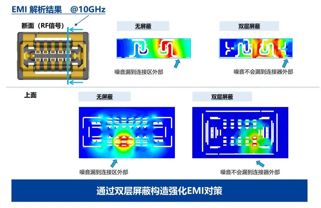 尺寸 省空间 防燥对策 RF特性(连接器单体) RF特性(连接器+FPC) 牢固构造 端子锁扣构造 通过金属诱导实现了较大的自校正量