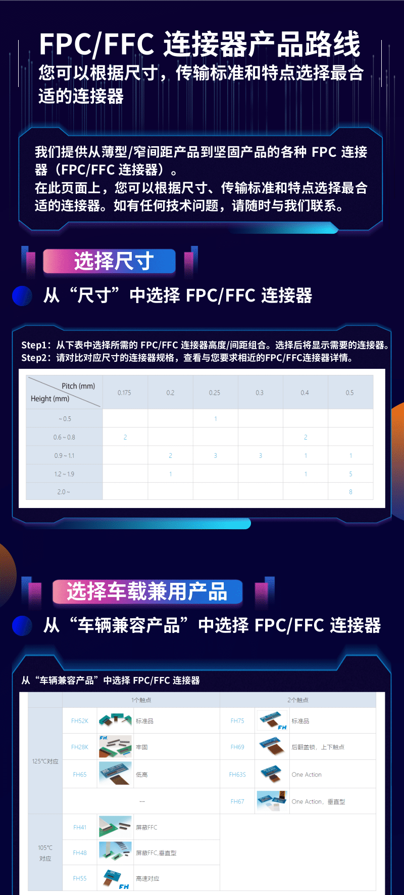 xiongmao熊猫体育提供从薄型/窄间距产品到坚固产品的各种 FPC 连接器(FPC/FFC连接器)。